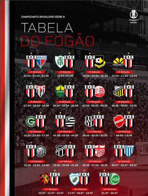 Confira a tabela completa com todos os jogos do Botafogo no Campeonato Brasileiro da Série B.